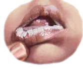 - Chronic Atrophic (Erythematous) Candidiasis : cherry patches or velvet textured plaques (usually under dentures)